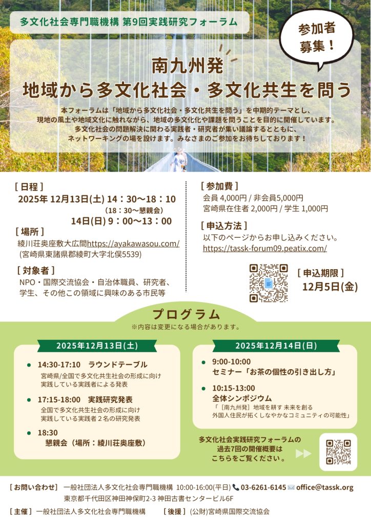 NPO・国際交流協会・自治体職員、研究者、学生、その他この領域に興味のある市民等