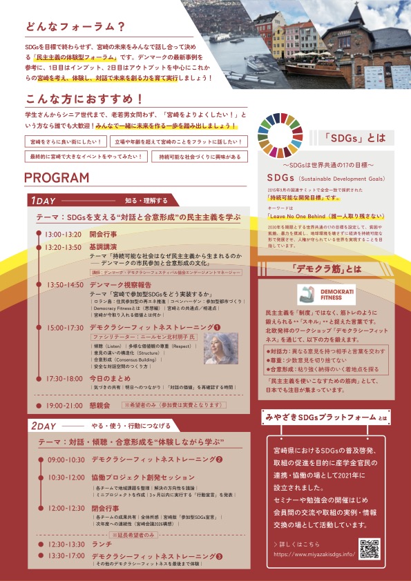 本フォーラムは、デンマークの最新事例を参考に、対話を通じて未来を創る力を育てる「民主主義の体験型フォーラム」です。
