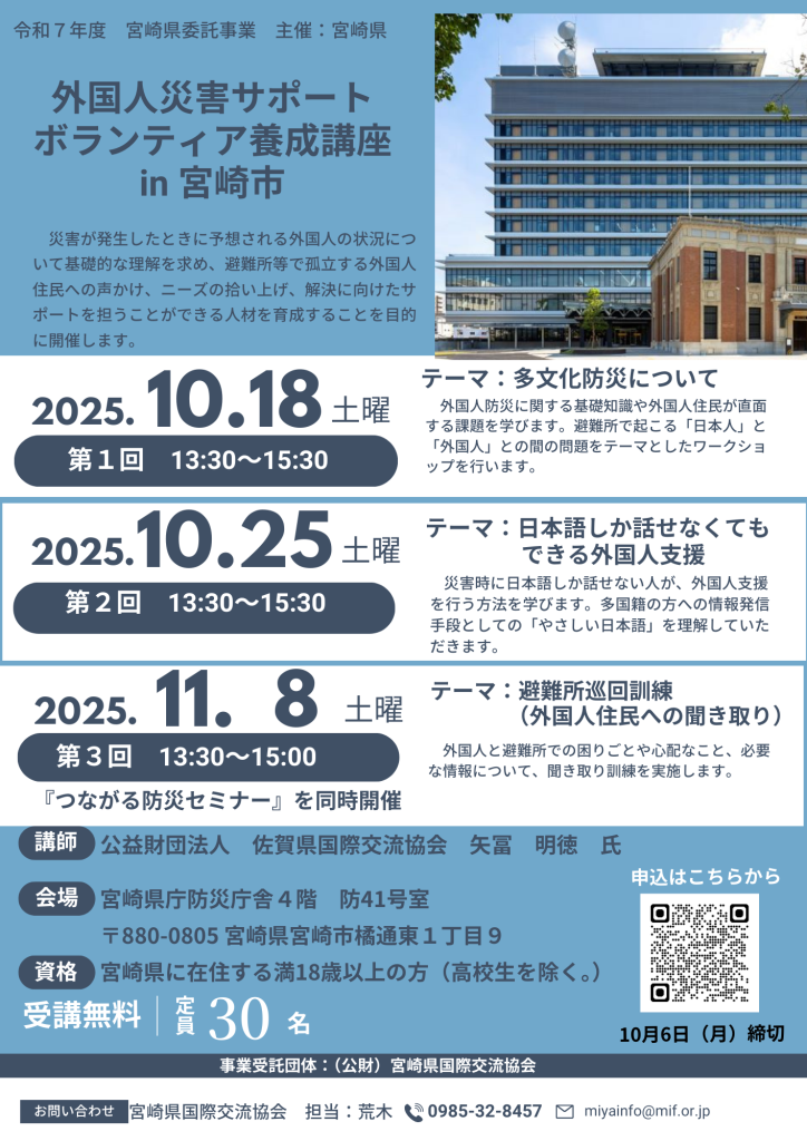 外国人災害サポートボランティア養成講座 in 宮崎市 ※要申込み 受講料無料