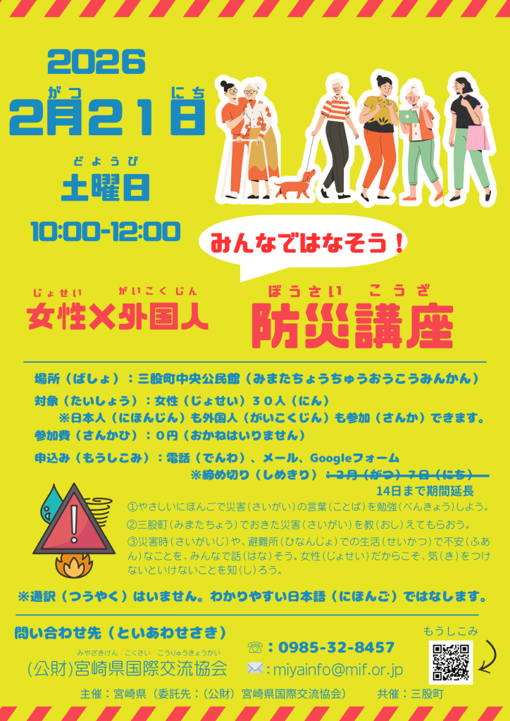 ◇申込(もうしこ)み・問合(といあわ)せ:(公財(こうざい))宮崎県国際交流協会(みやざきけんこくさいこうりゅうきょうかい)